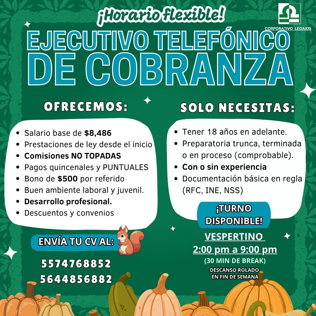 Conviértete en uno de nuestros Ejecutivos Telefónicos. Si cuentas con experiencia previa o es tu primer paso en el área de cobranza, ¡queremos conocerte!