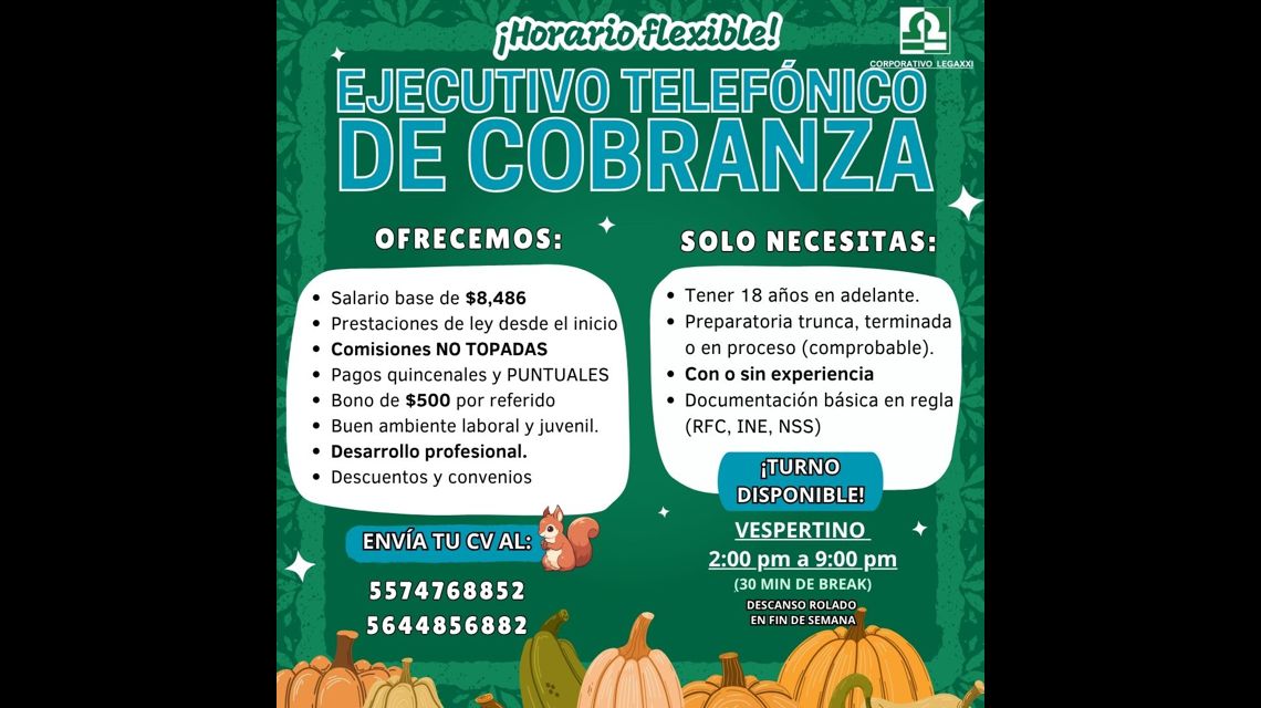 - No se requiere experiencia previa; se valora haber trabajado en cobranza o atención telefónica